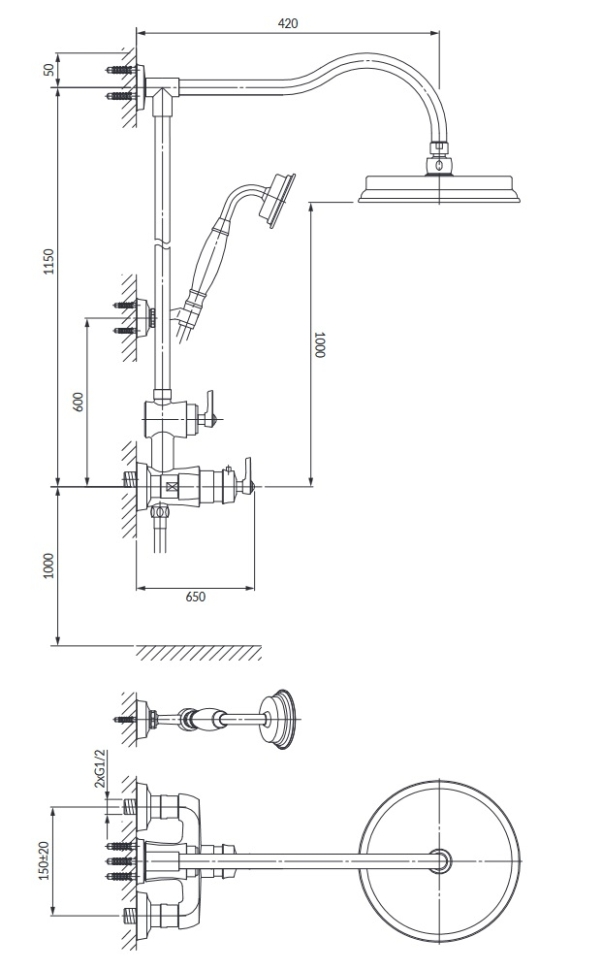 душова система Omnires Armance brushed brass (AM5244BSB)