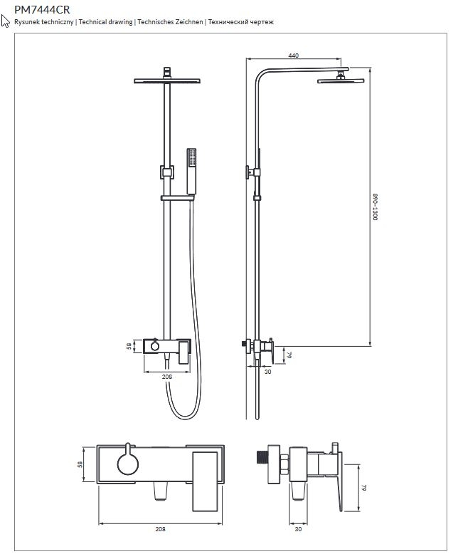 душова система Omnires Parma хром (PM7444CR)