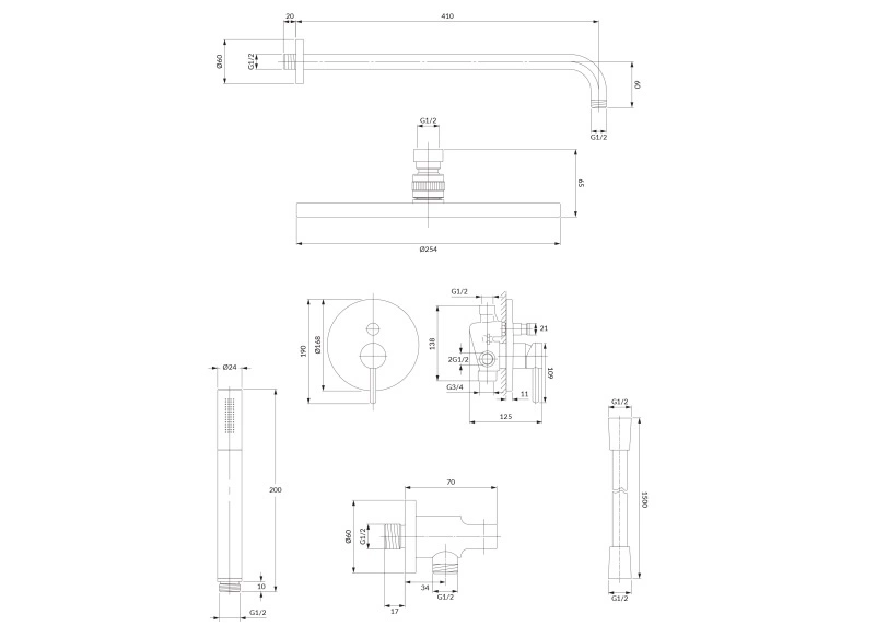 душова система прихованого монтажу Omnires Y graphite (SYSY35GR)