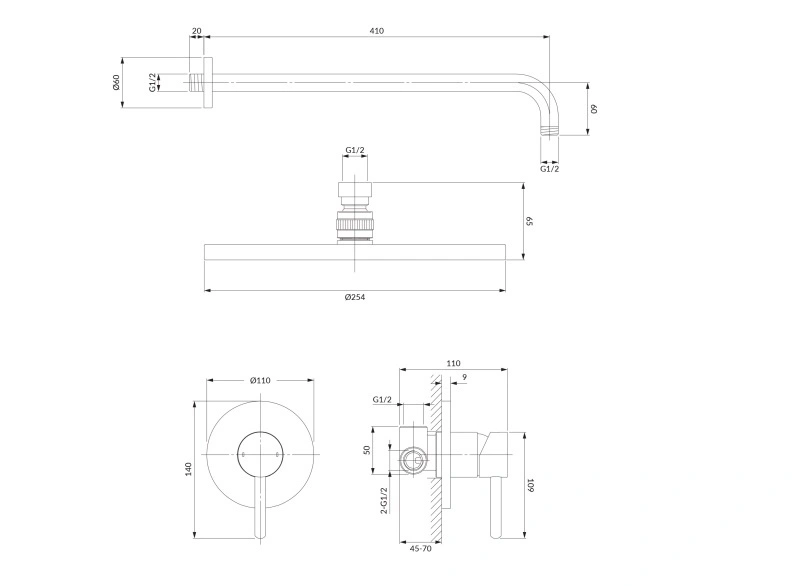 душова система прихованого монтажу Omnires Y graphite (SYSY36GR)