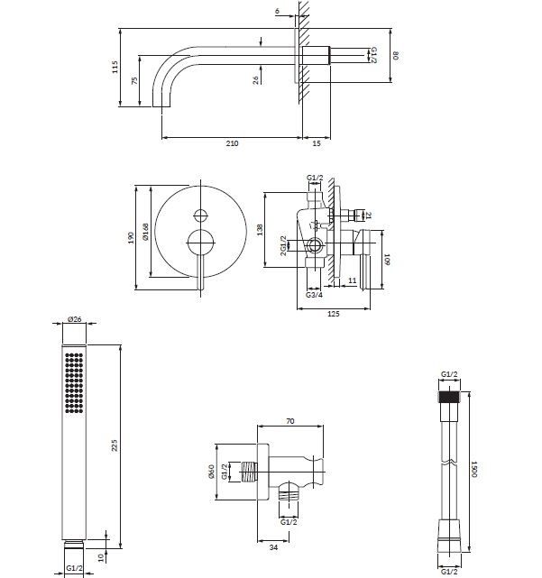 душова система прихованого монтажу Omnires Y matt white (SYSYW01WM)