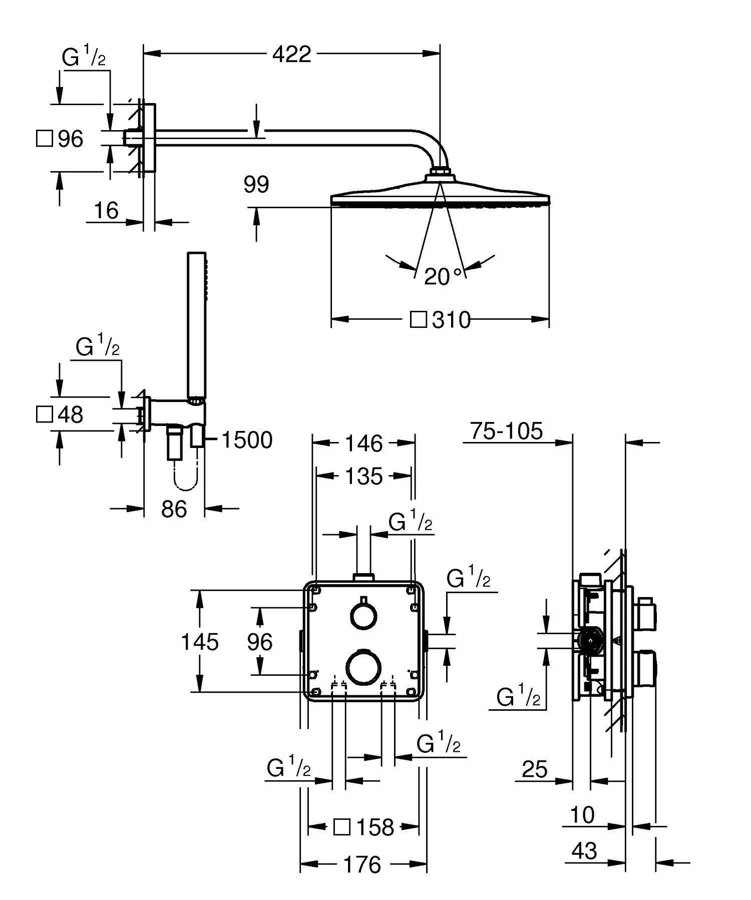 Душова система прихованого монтажу з термостатом Grohe Grohtherm (34870000)
