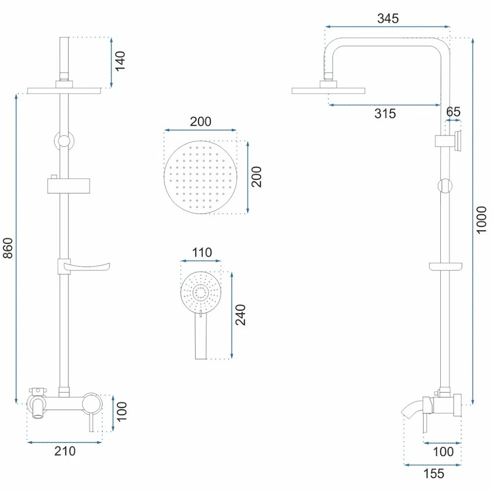 душова система Rea Luis хром (REA-P7007)