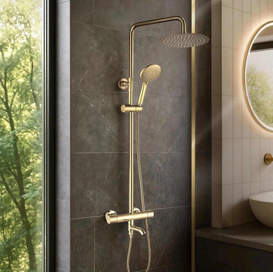 душова система Rea Lungo Diamond gold, з термостатом (REA-P5960)