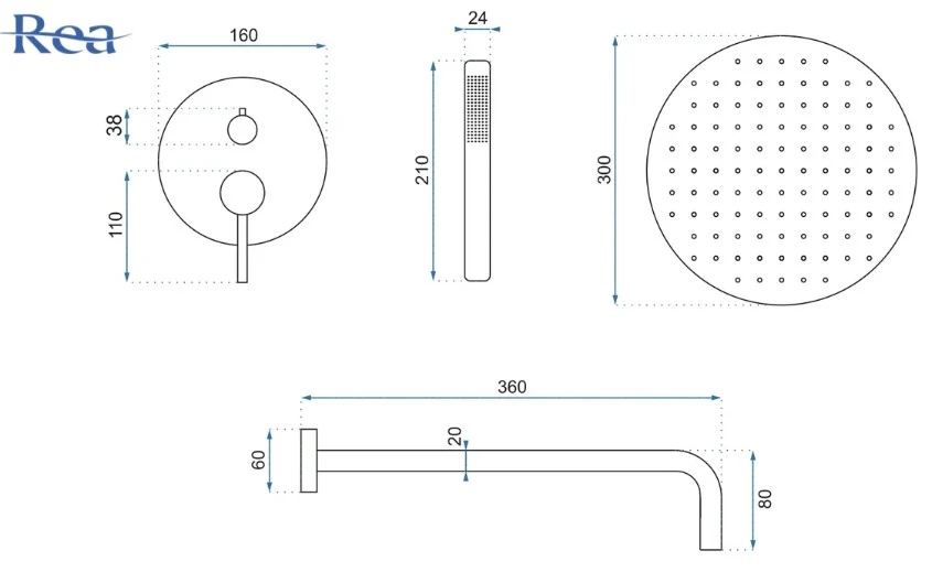 душова система Rea Lungo Gold Мати + box (REA-P4160)