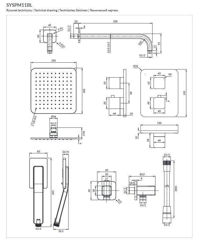 душова система з термостатом Omnires Parma grafit (SYSPM11GR)