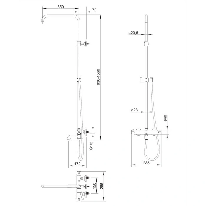 душова система з термостатом Omnires Y black (Y1234ALBL)