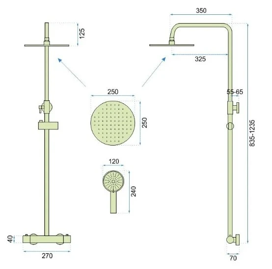 душова система з термостатом Rea Vincent золотий матовий (REA-P6602)