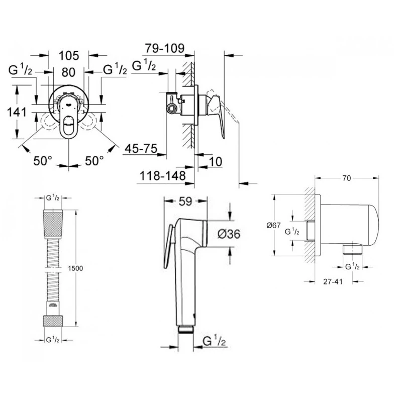 Душовий гарнітур для біде Grohe BauLoop (111042)