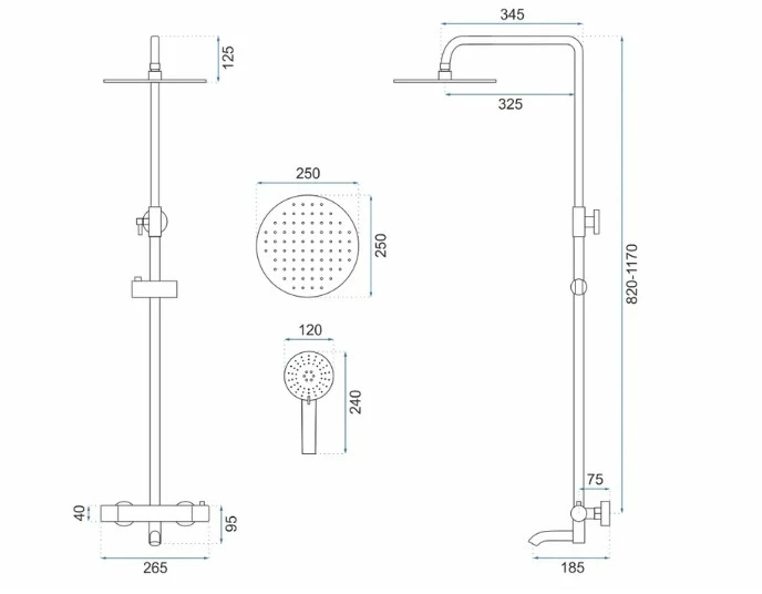 душовий гарнітур Rea Lungo chrome, з термостатом (REA-P6607)