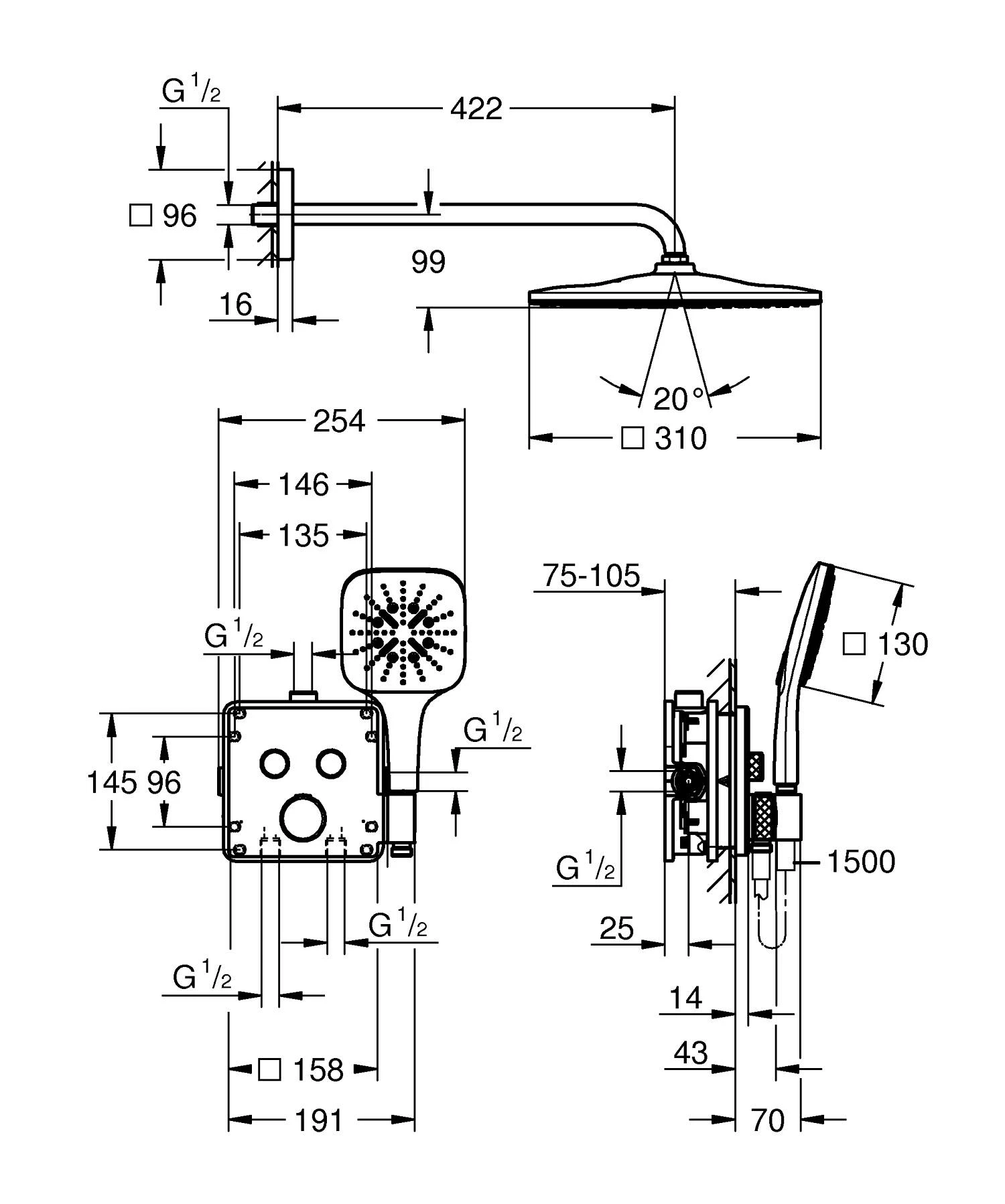 - Комплектация Термостат прихованого монтажу з 2 кнопками керування (29 125). Комплект верхньої монтажної частини G