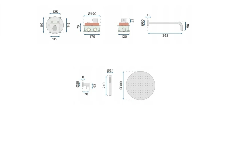 душовий комплект прихованого монтажу Rea Lungo з термостатом gold box (REA-P8550)