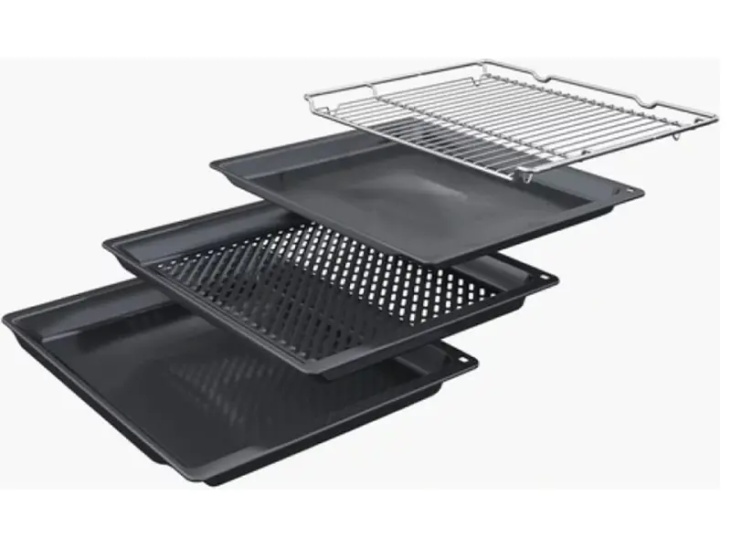 * Решетка: 1 шт, Глубокий лист: 1 шт, Мелкий лист: 1 шт, Противень Air-Fry: 1 шт, Телескопические направляющие: 1 пара