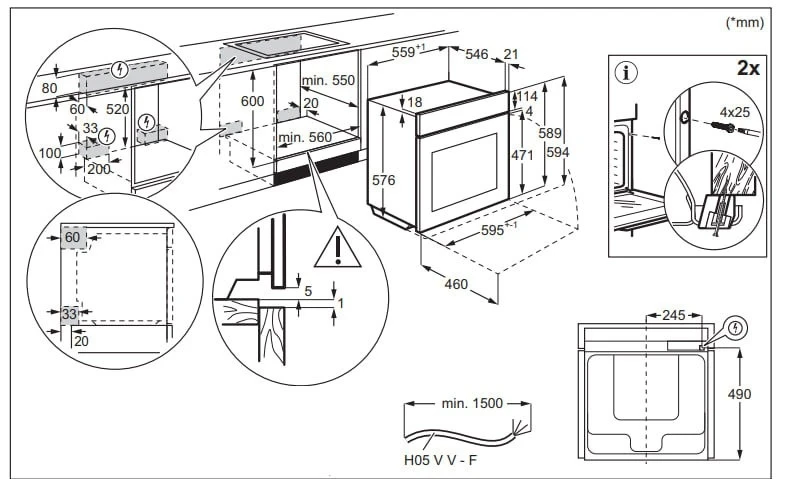- Ширина, мм 595