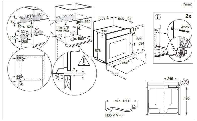- Комплектация термощуп для м'яса; 1 решітка з нержавіючої сталі; Духова шафа; Дека та піддони;