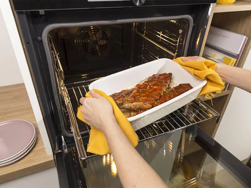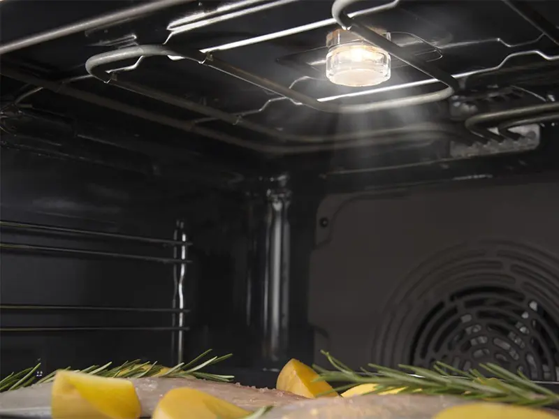 Прекрасные результаты приготовления достигаются за счет продуманного расположения верхних нагревательных элементов, при котором малый нагреватель находится в середине большого. Благодаря этому тепло распределяется равномерно, поэтому блюдо запекается до хрустящей корочки, оставаясь нежной и сочной внутри.