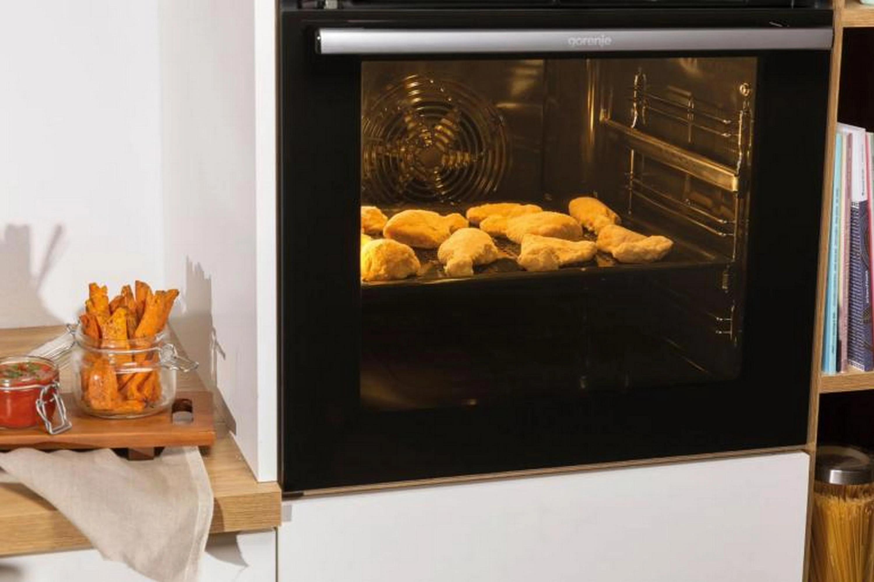 Духова шафа Gorenje електрична, 77л, A+, пара, дисплей, готування на різних рівнях, нерж