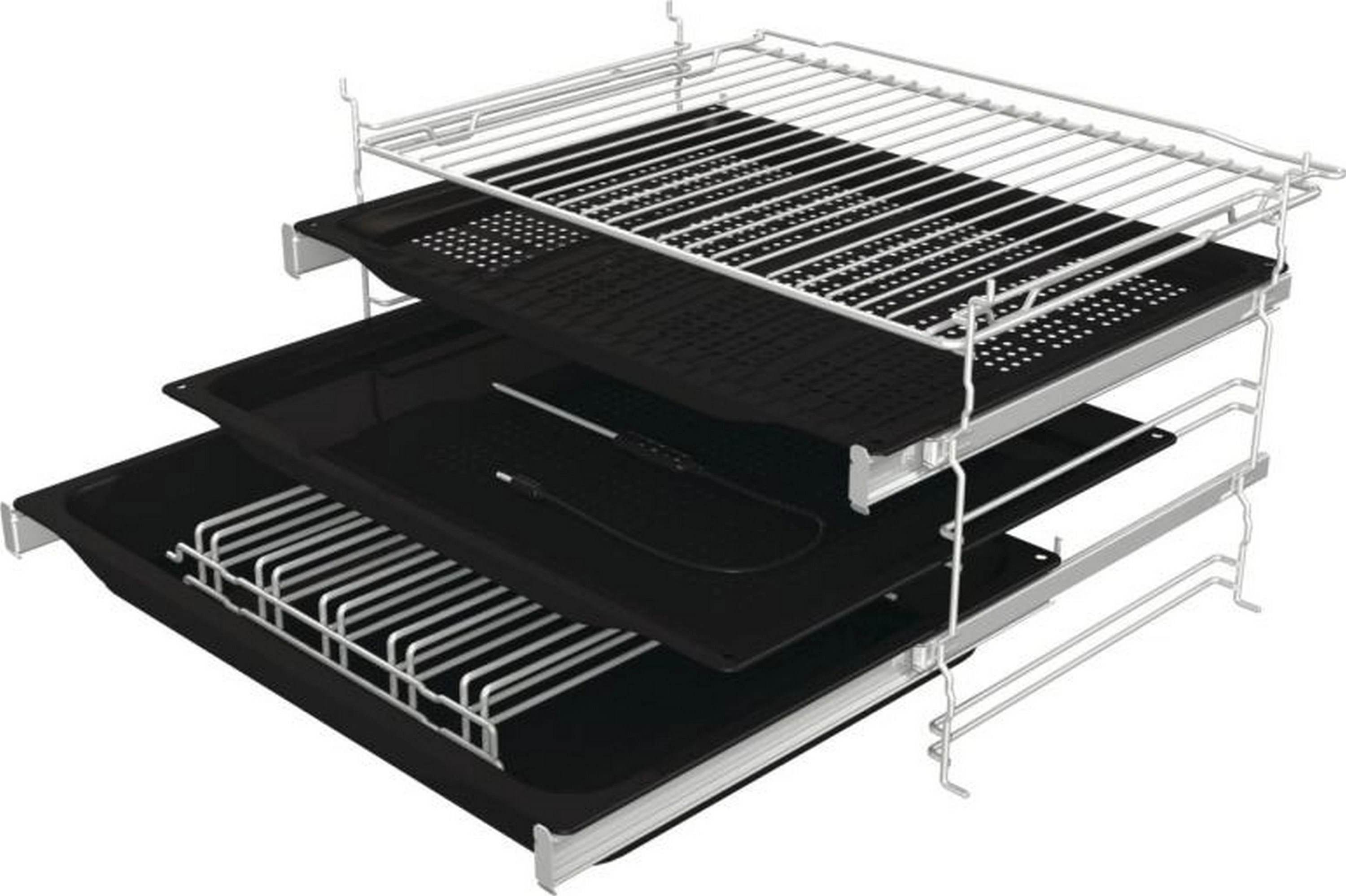 - Комплектация 1 решітка; 1 глибоке емальоване деко; 1 мілке емальоване деко; 1 емальоване деко з перфорацією;
