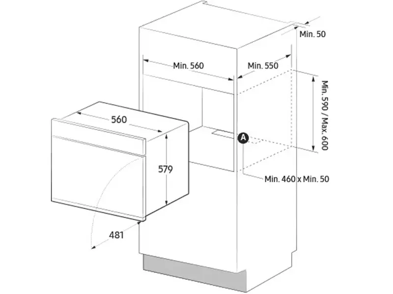 - Размеры ниши для встраивания (ВхШхГ), см Г) 59-60х56х55 см
