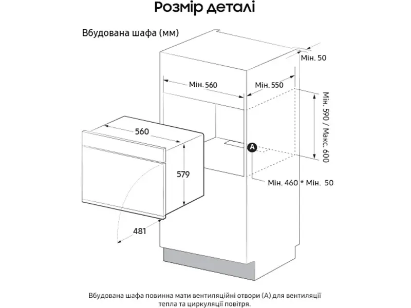 - Размеры ниши для встраивания (ВхШхГ), см 59.0-60.0 х 56.0 х 55.0 см