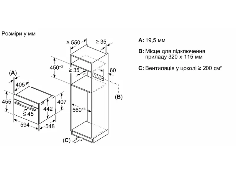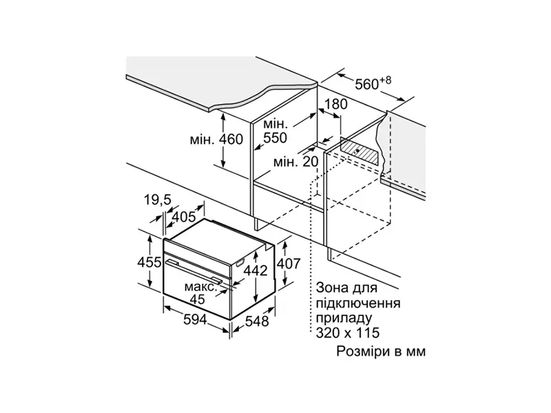 - Размеры ниши для встраивания (ВхШхГ), см 45.5 x 56.8 x 55