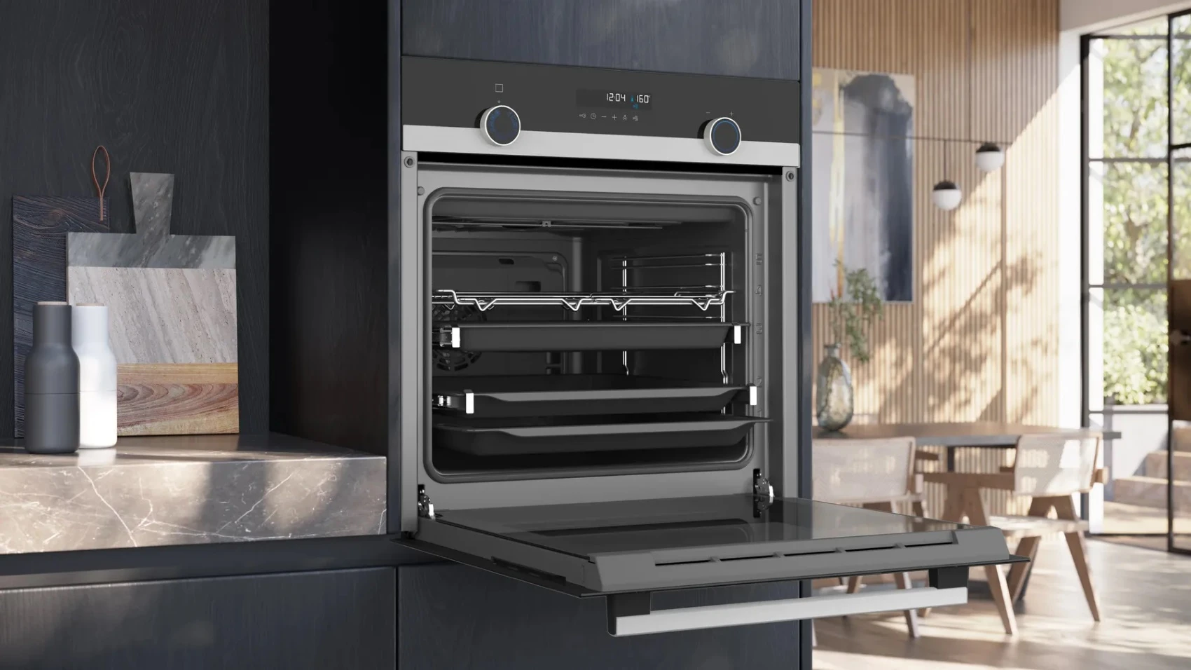 Приготування їжі тепер під контролем завдяки вбудовуваній духовій шафі Siemens HB557JEB6T. З 8 програмами приготування, функцією тривимірного обдування гарячим повітрям 3D та простою у використанні сенсорною панеллю керування приготування їжі перетвориться на справжнє свято. Легке очищення духової шафи всередині завдяки спеціальному покриттю ecoClean Plus.