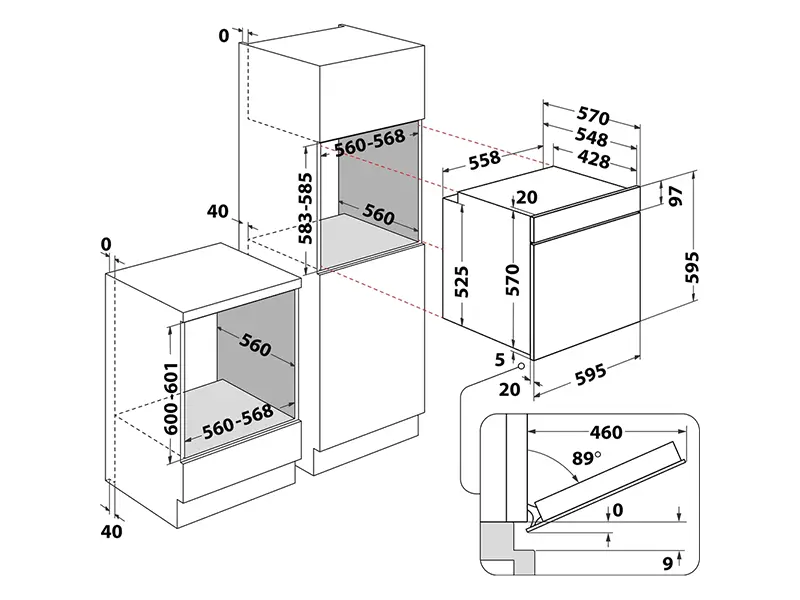 - Размеры ниши для встраивания (ВхШхГ), см 60х56.8х56