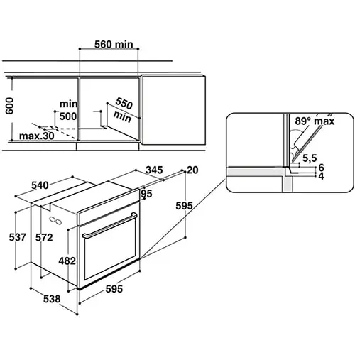 * Размер ниши для встраивания (ВхШхГ) – 60 х 56 х 56 см