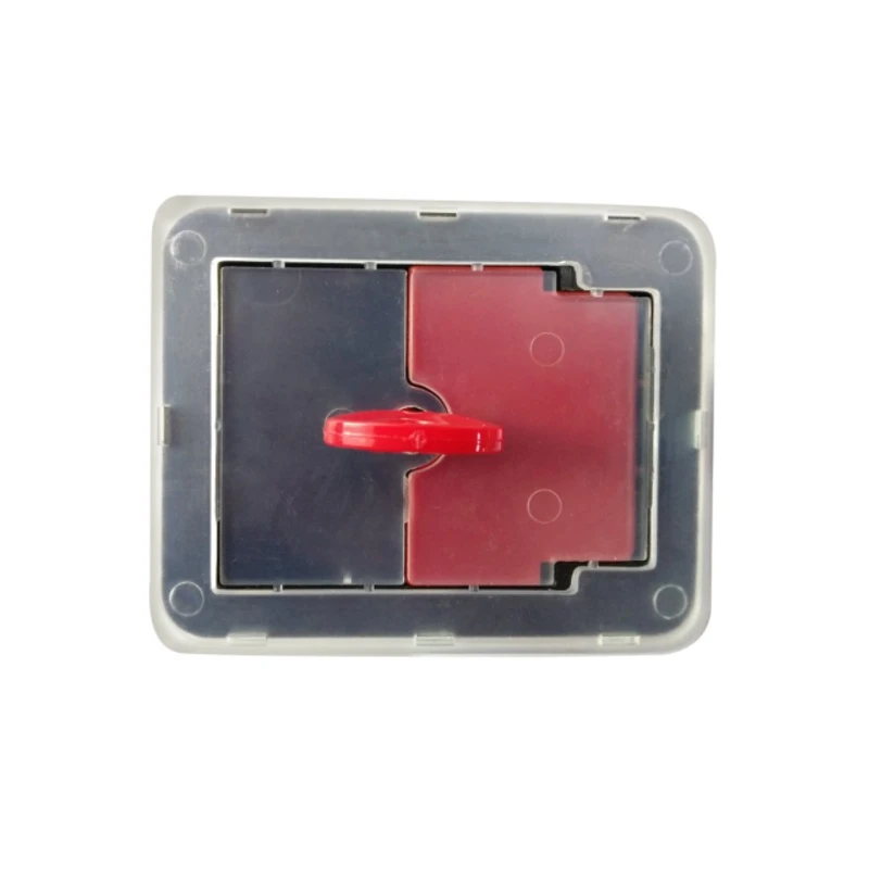 В нештатном режиме часть крышки выдавливается, защелка замка открывается путем нажима на красную часть.