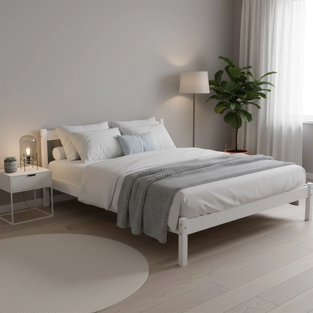 Шукаєте ідеальне ліжко для вашої спальні? Двоспальне дерев'яне ліжко Mebigrand MG01 стане чудовим вибором для тих, хто цінує комфорт і стиль. Його елегантний білий колір (RAL 9003) не лише доповнить інтер'єр вашої кімнати, але й створить атмосферу затишку та спокою.