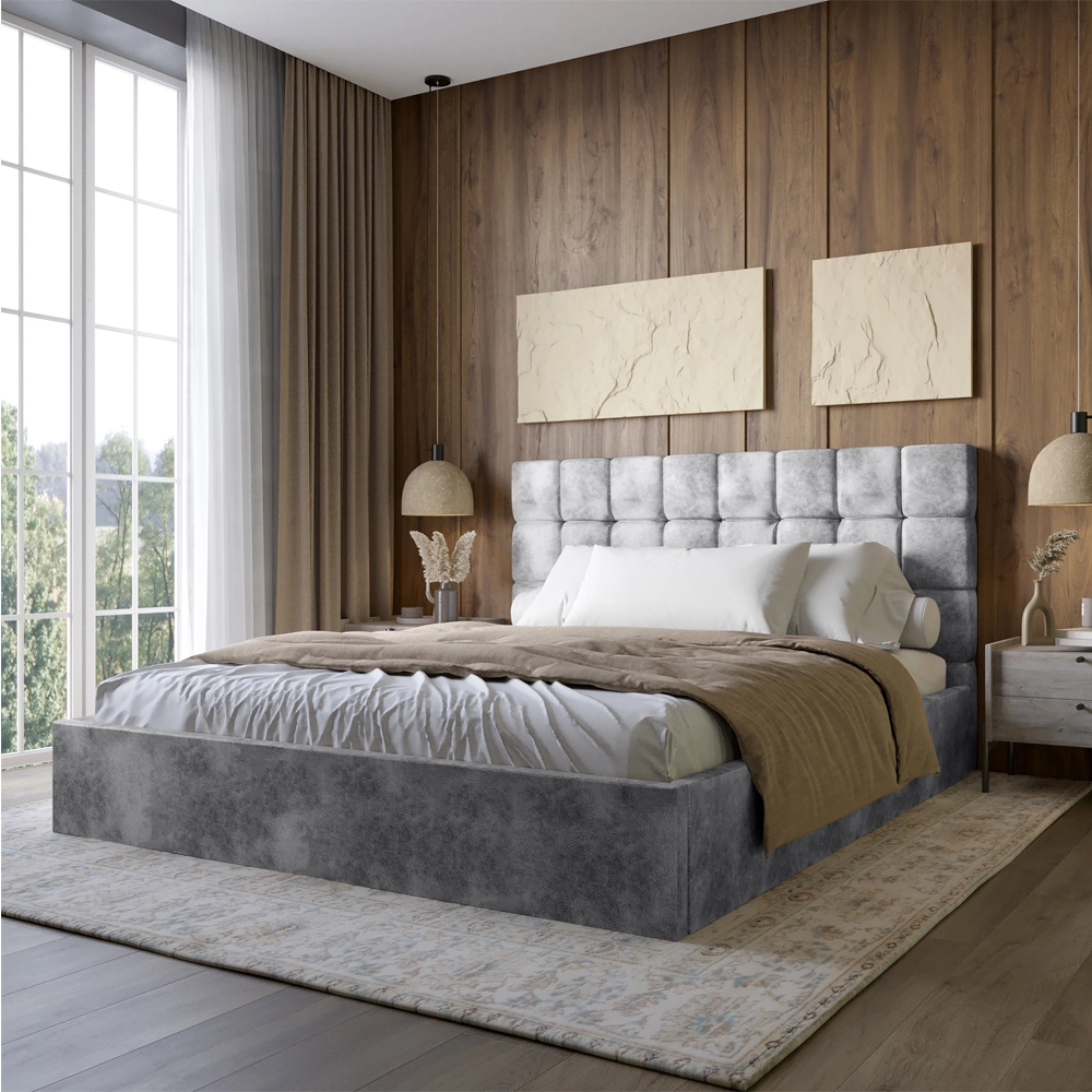 Двоспальне дерев'яне ліжко з м'яким узголів'ям і підйомним механізмом LION Піксі Silk 303 (Сірий) 16