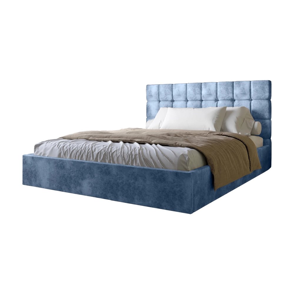 Двоспальне дерев'яне ліжко з м'яким узголів'ям і підйомним механізмом LION Піксі Silk 503 (Темно-син