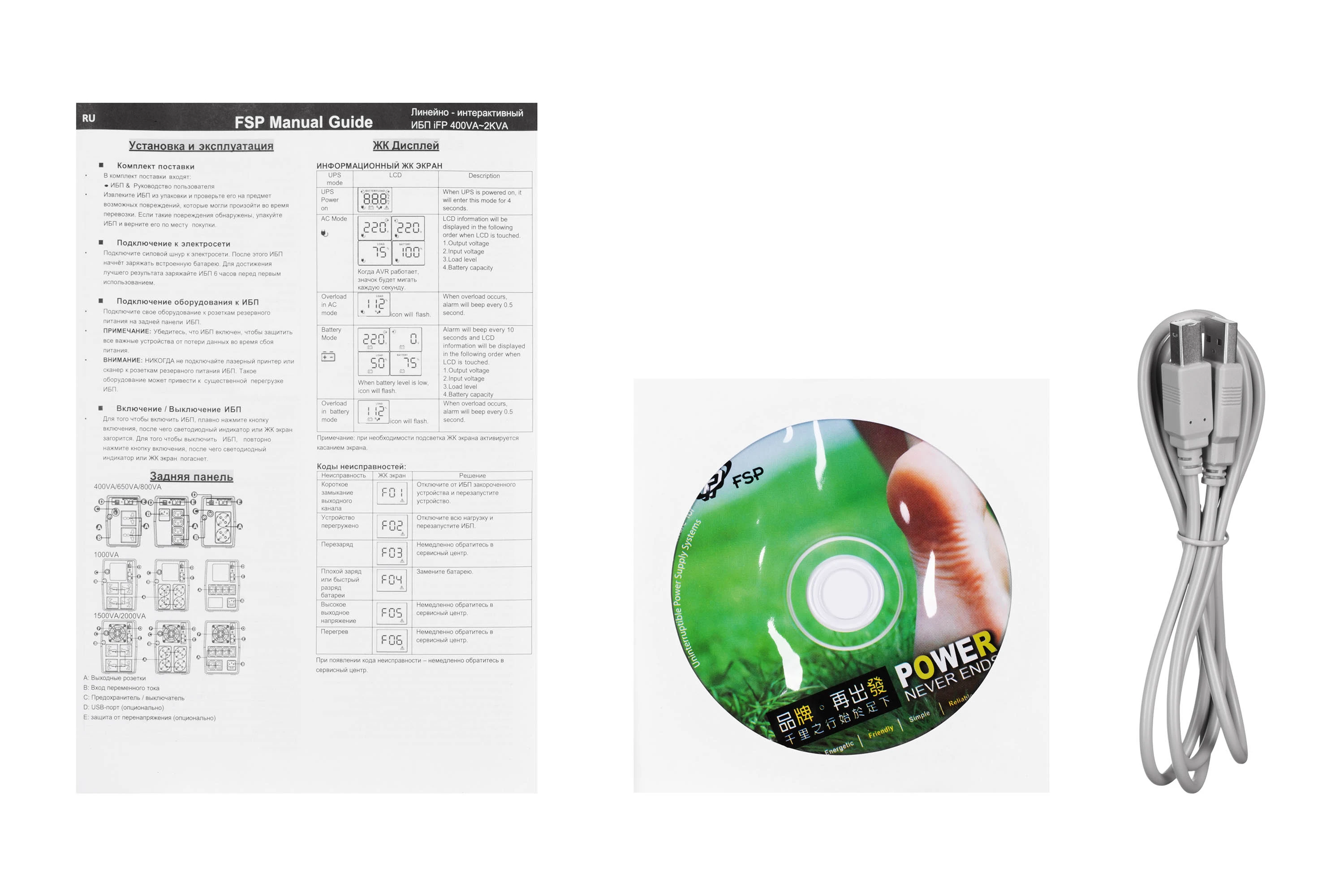 Джерело безперебійного живлення FSP iFP2000, 2000VA/1200W, LCD, USB, 4xSchuko