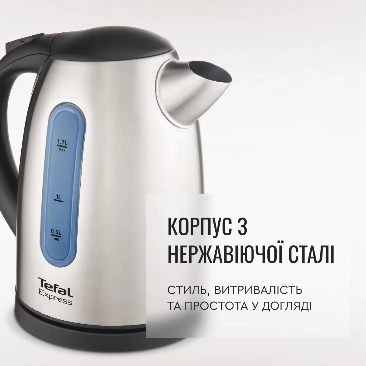 Електрочайник Tefal Express 2 - поєднання практичності, естетики та безпеки. Корпус з нержавіючої полірованої сталі робить модель стильною та водночас стійкою до зовнішніх впливів. Ексклюзивна та продумана до кожної деталі форма стане бездоганним доповненням інтер’єру будь-якої сучасної кухні.