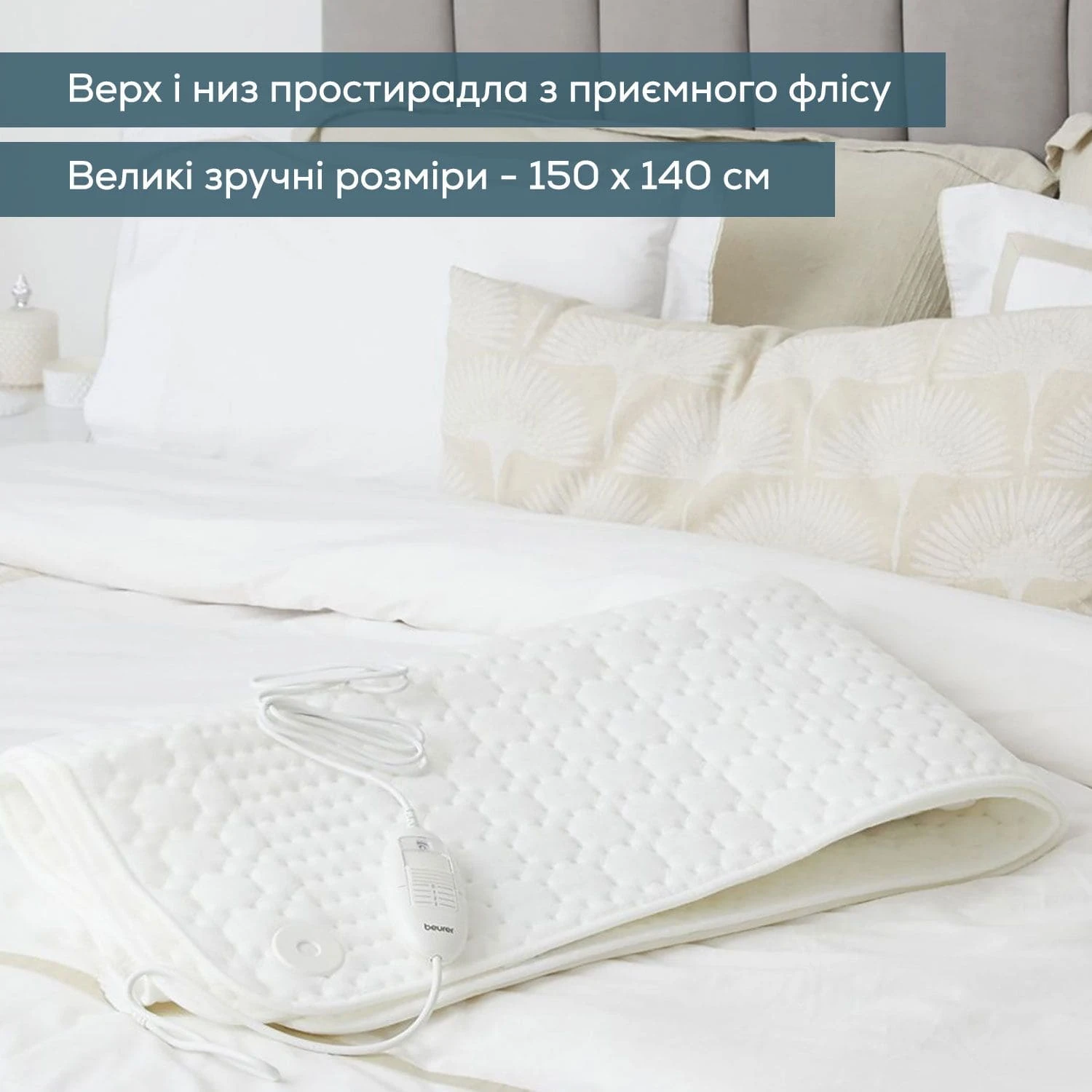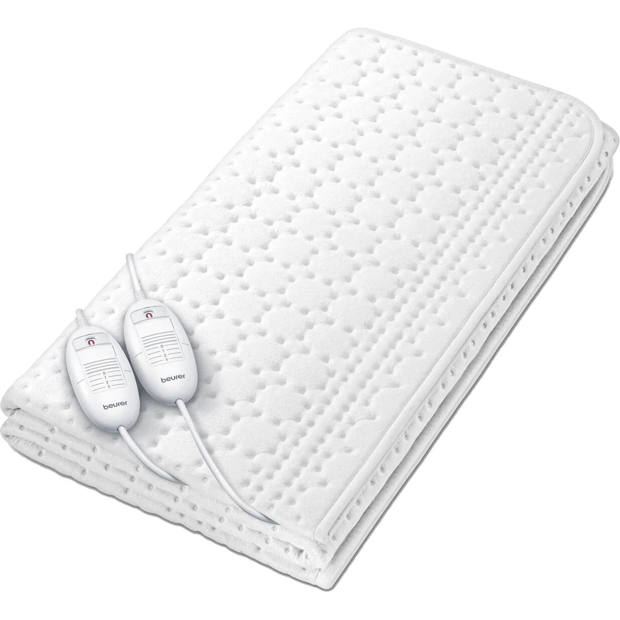 Електропростирадло Beurer, від мережі, 150х140см, 2х60Вт, 3 режими, для двох осіб, фліс, білий