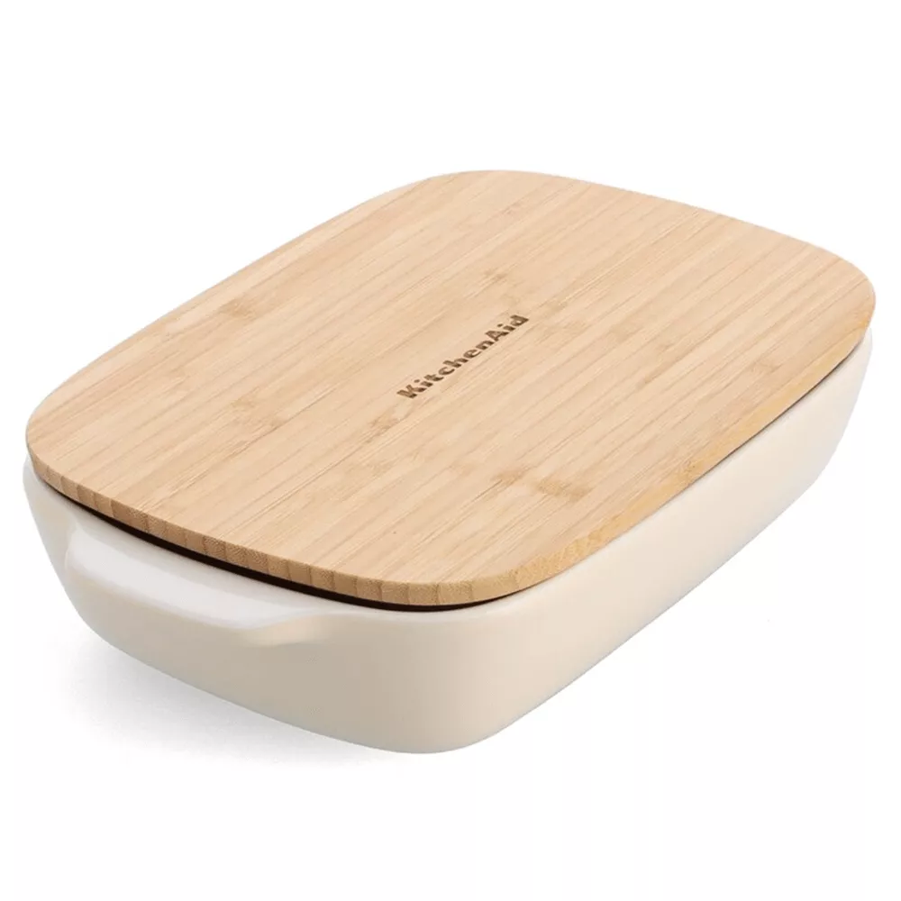 Форма для випікання з кришкою KitchenAid керамогранітна, 7,5 х19, 5х32, 8 см, 1,9 л, кремовий колір