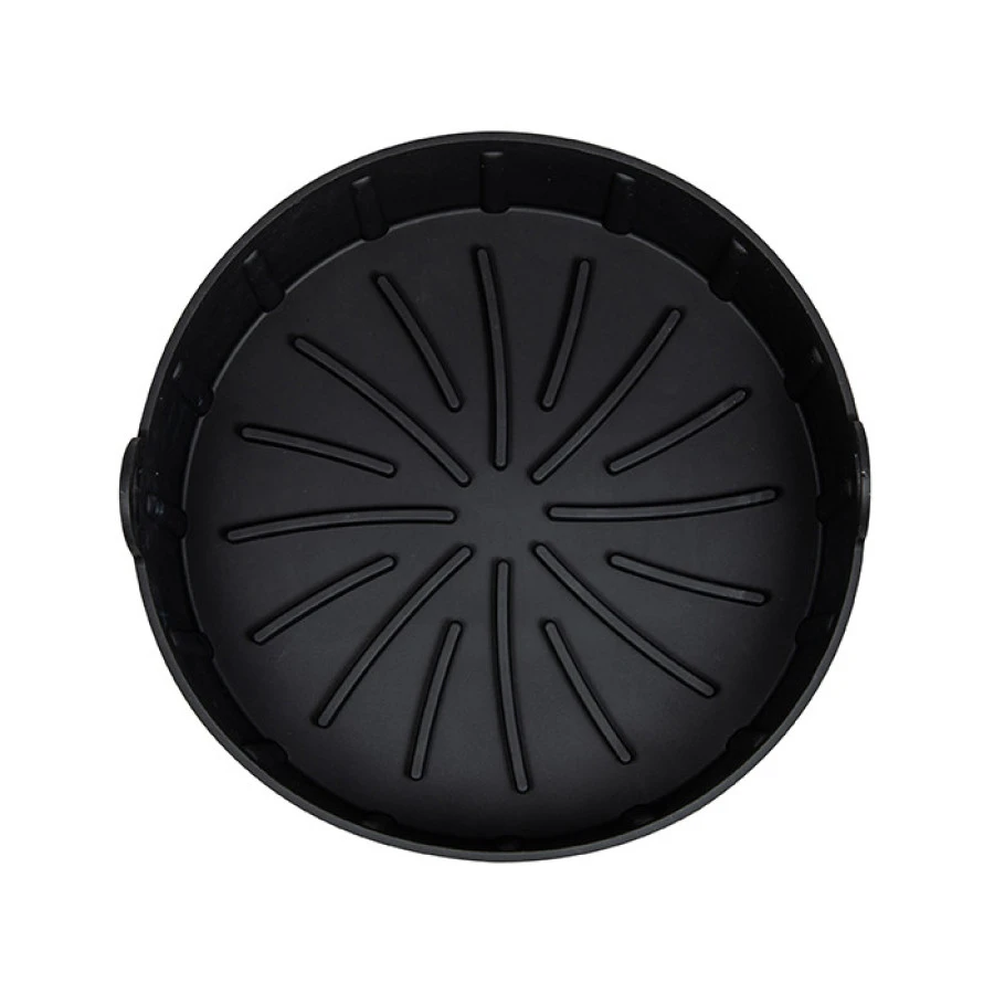 Використовуйте цю круглу силіконову форму розміром 22 х 8,5 см, призначену для фритюрниці, щоб ще ефективніше реалізовувати всі ваші рецепти. Виготовлена з силікону, тому вона чудово витримує високі температури фритюрниці. Рельєфні лінії на внутрішній поверхні форми допомагають гарячому повітрю ефективніше циркулювати і відокремлювати жир від кожного продукту. Спеціалізований посуд для фритюрниць, який дуже легко миється.