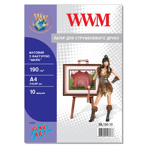Фотопапір WWM матовий "Шкіра" 190Г/м кв, A4, 10л (ML190.10)