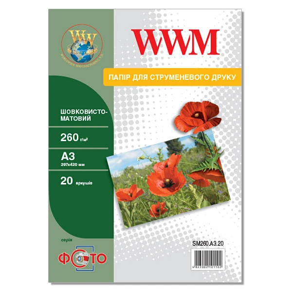 Фотопапір WWM шовковисто-матовий 260г/м кв, A3, 20л (SM260.A3.20)