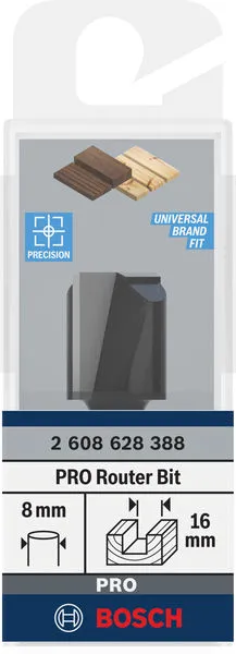 Твердосплавная пазовая фреза с 8 мм хвостовиком, диаметром 16 мм, рабочей длиной 20 мм и общей — 51 мм. С двумя режущими кромками эта фреза искусно вырезает небольшие пазы под соединение, декоративные фальцы и выемки для уплотнительных прокладок в древесине, листовых, полимерных и абразивных материалах, например Corian®, на вертикальных фрезерных машинах.