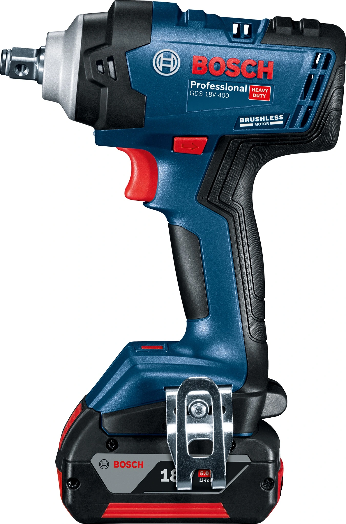 Акумуляторний ударний гайкокрут GDS 18V-400 Professional займає лідируючі позиції в класі інструментів середнього крутного моменту по потужності і міцності. Він оптимальний для закручування болтів М10 і М12. Забезпечуючи крутний момент 400 Н·м, цей ударний гайкокрут є достатньо потужним для затягування навіть болтів M20. Міцність інструменту додатково збільшується за рахунок збільшення терміну служби критично важливих компонентів.