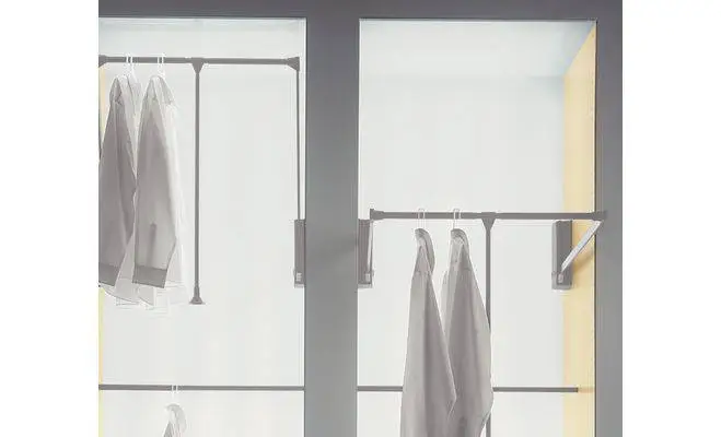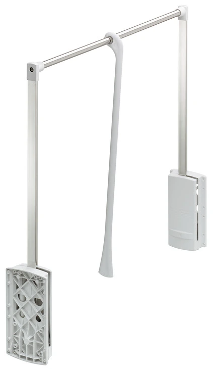 Гардеробний ліфт для монтажу на боковій стінці гвинтами, максимальне навантаження до 10 кг. Виготовлений зі сталі та пластмаси, поверхня нікельована. Кріплення входить в об'єм поставки. Довжина ширини корпусу 600-1000 мм.