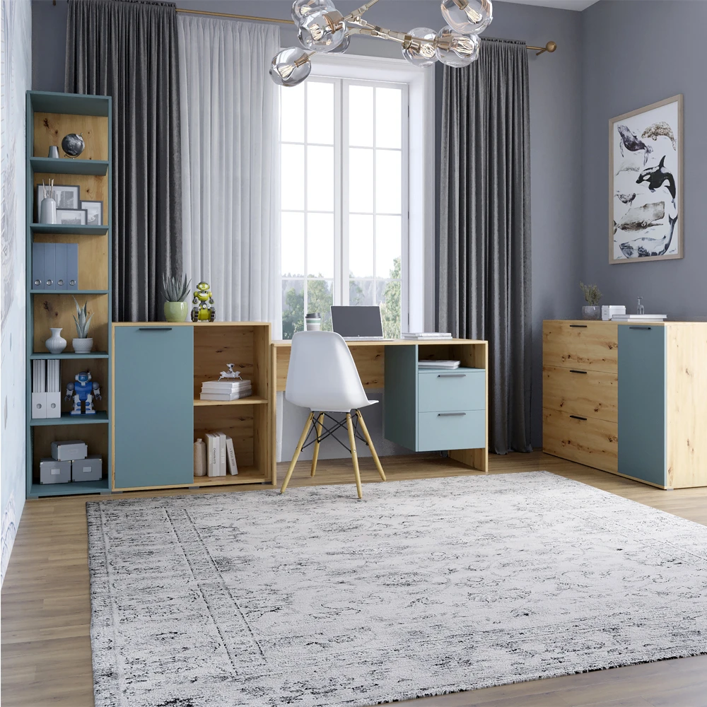 Откройте для себя идеальный гарнитур для вашей комнаты из коллекции LION! Этот стильный комплект, состоящий из четырех элементов, объединяет элегантность и функциональность, создавая уютную атмосферу в вашем доме. Дизайн в оттенках дуба артизан и гранита серого придает современный вид, делая этот гарнитур настоящим украшением любого интерьера.