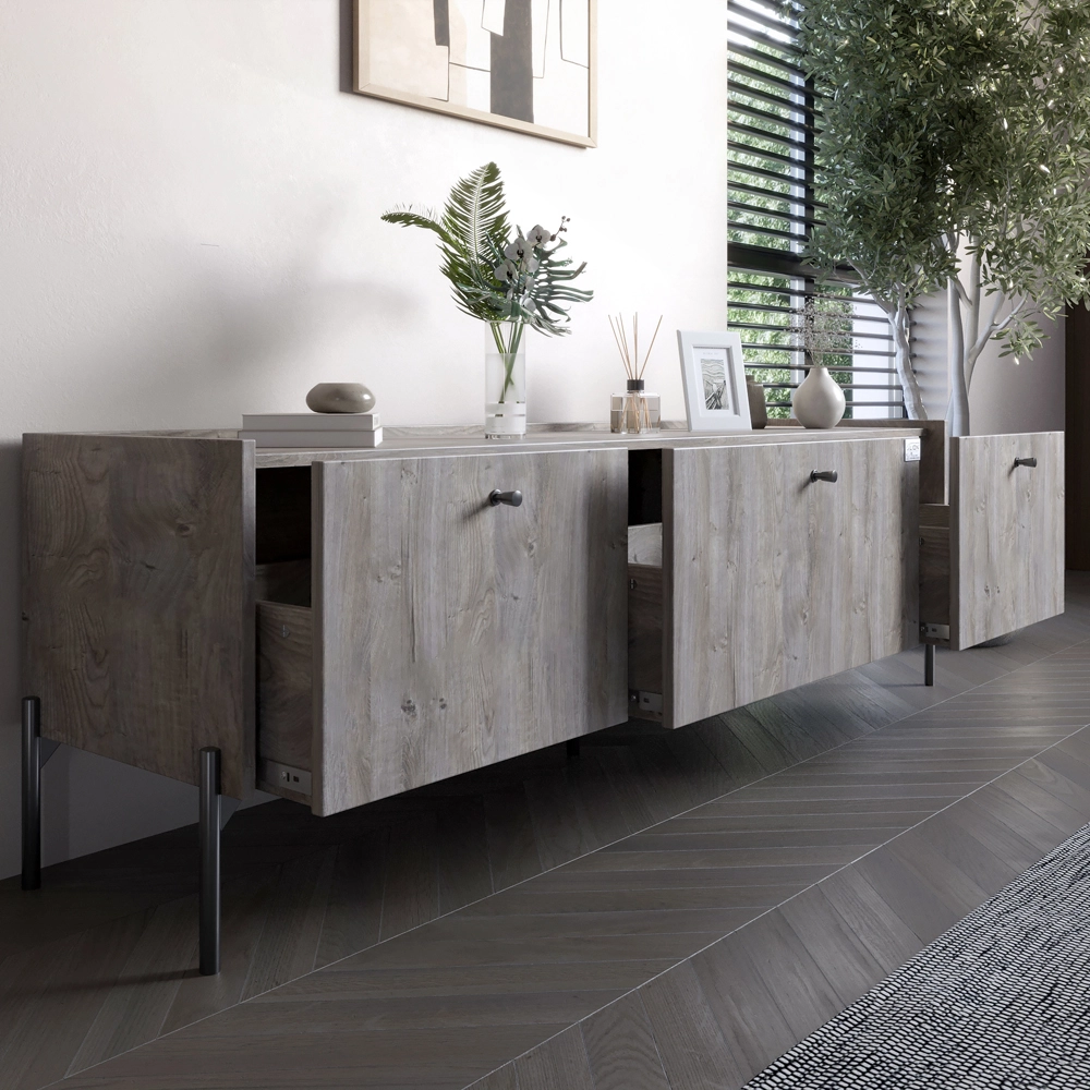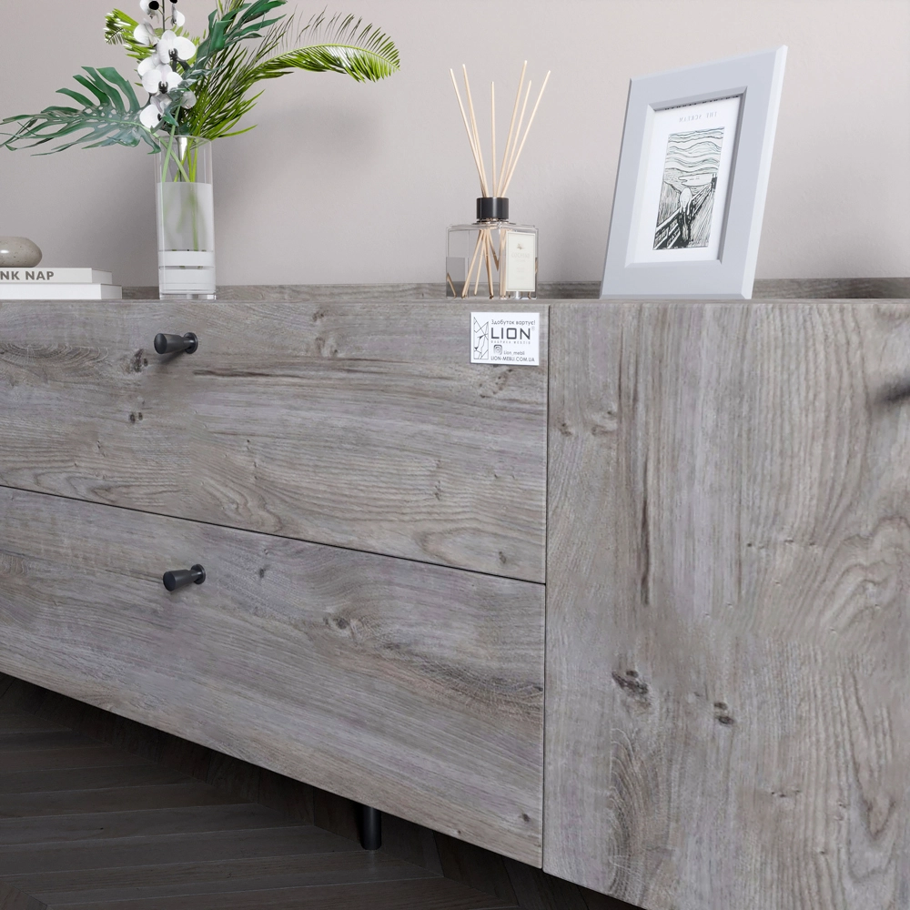 Создайте уют в вашей спальне с комплектом мебели LION Wood, сочетающей элегантный скандинавский стиль и практичность. Этот гарнитур, состоящий из ТВ-тумбы с двумя дверцей и ящиками, а также тумбы с тремя ящиками, станет идеальным решением для организации пространства. Современный дизайн и эстетический вид мебели помогут подчеркнуть ваш интерьер, делая его более комфортным и привлекательным. Изготовленный из высококачественного ЛДСП SWISS KRONO, комплект мебели отличается долговечностью и стойкостью к механическим повреждениям. Современные механизмы открывания ящиков и металлические ножки обеспечивают максимальный комфорт в использовании, а кромка 2 мм придает эстетичность и защищает мебель от повреждений. LION Wood – это не просто мебель, а ваш шаг к созданию гармоничного и стильного пространства.