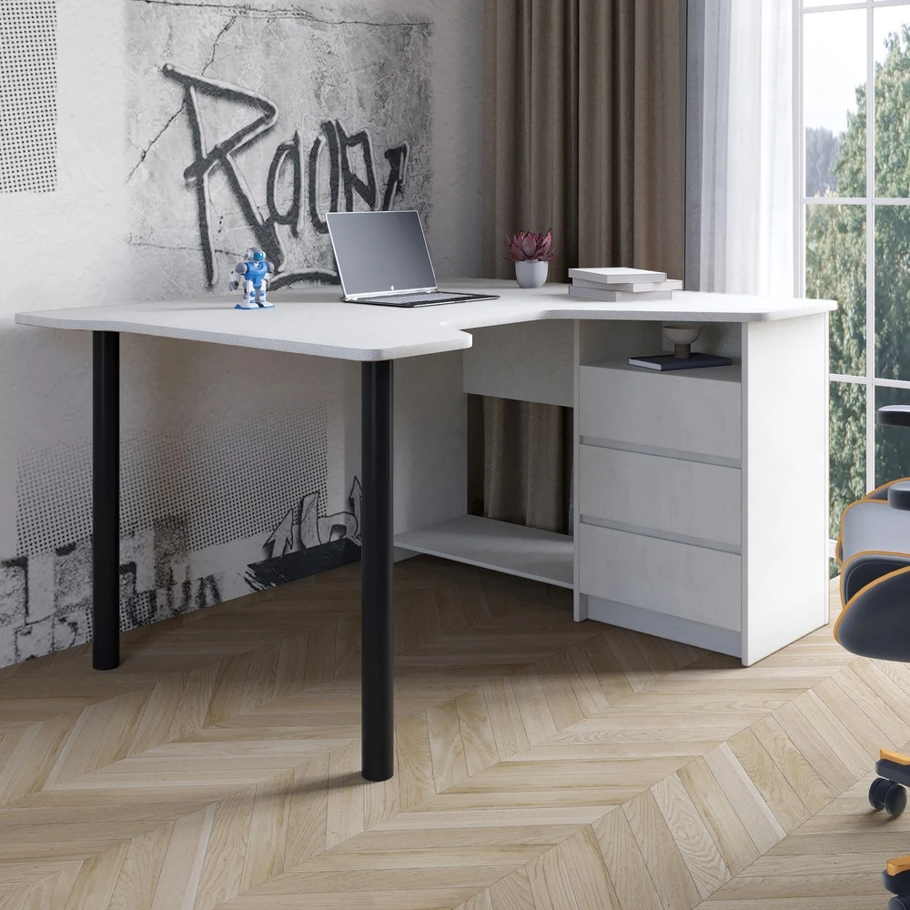 Геймерський комп'ютерний стіл LION Буст кутовий з шухлядами Бетон Style (LION-041450)
