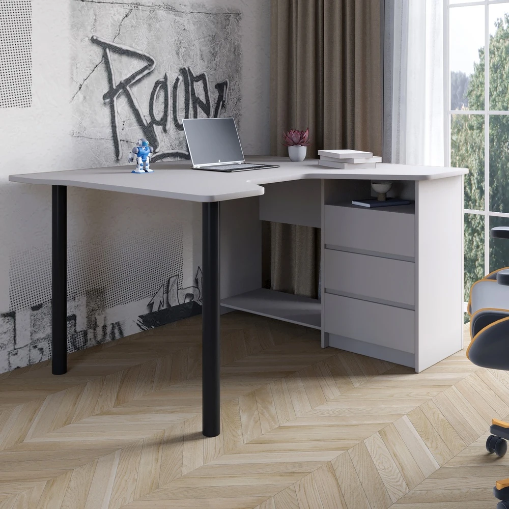 Геймерский компьютерный стол LION Буст угловой с ящиками Кашемир