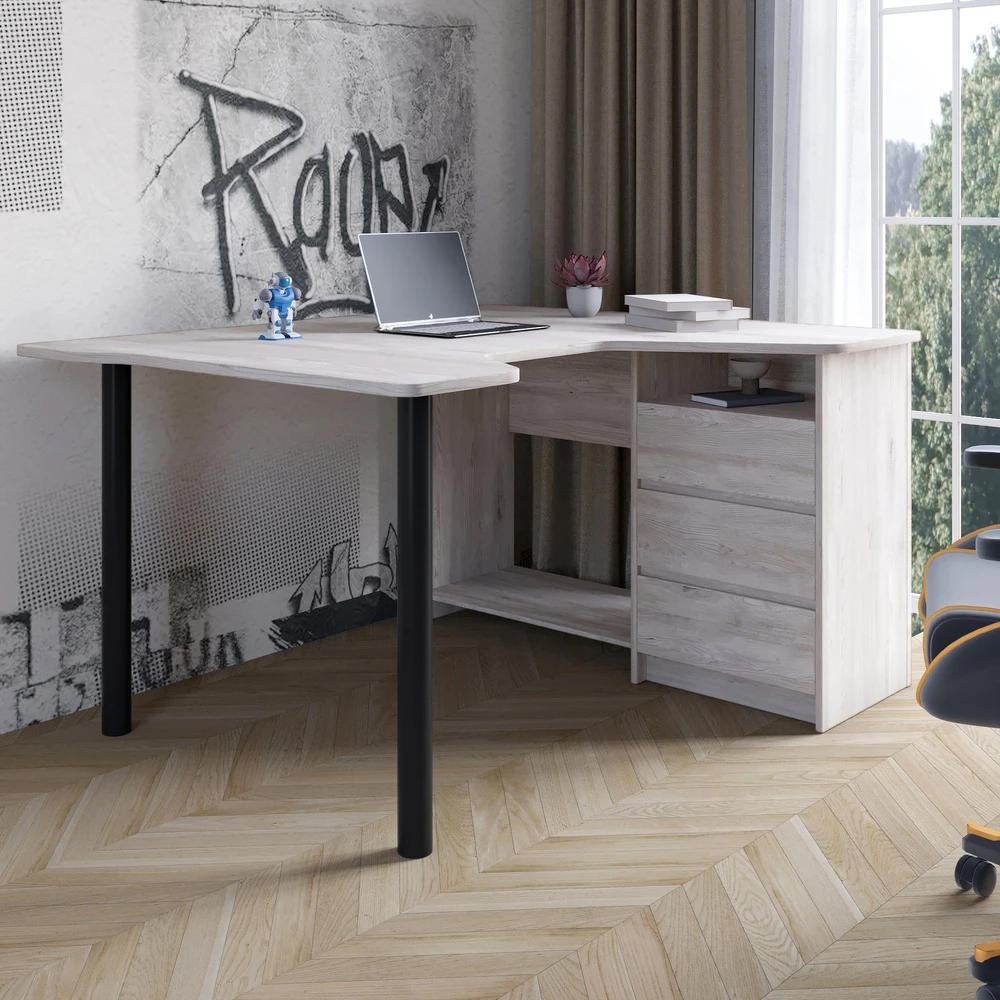 Геймерський комп'ютерний стіл LION Буст кутовий з шухлядами Самоа Димчастий (LION-041461)