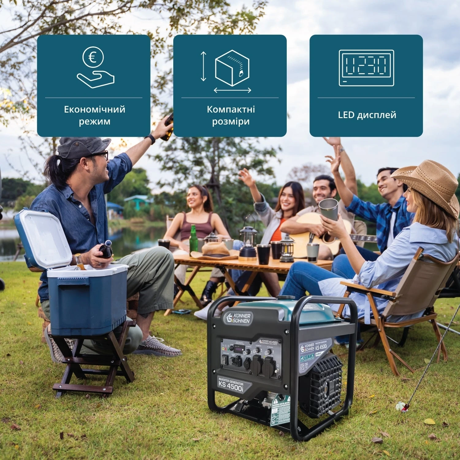 Генератор бензиновий інверторний Konner&Sohnen KS 4500i, 230В, 4.5кВт, ручний стартер, 33кг