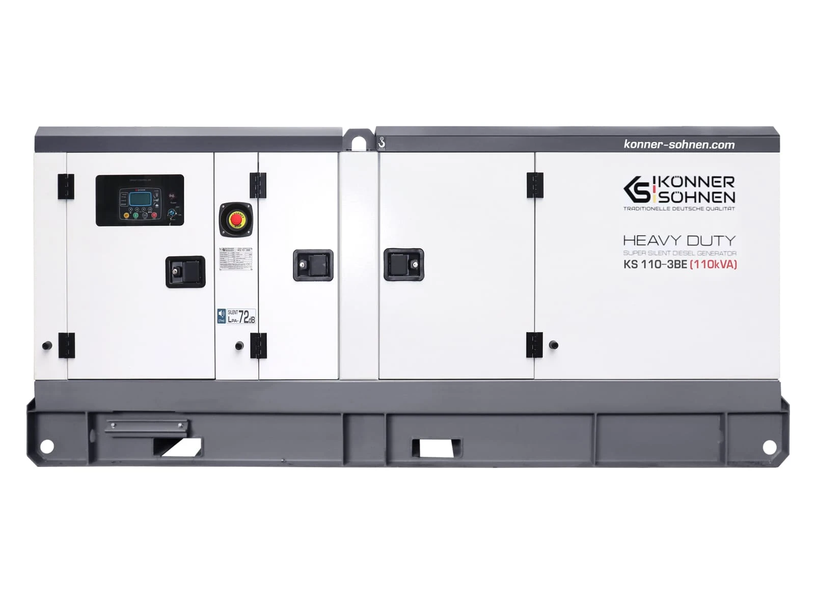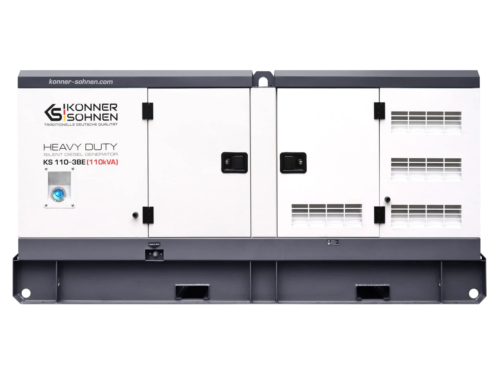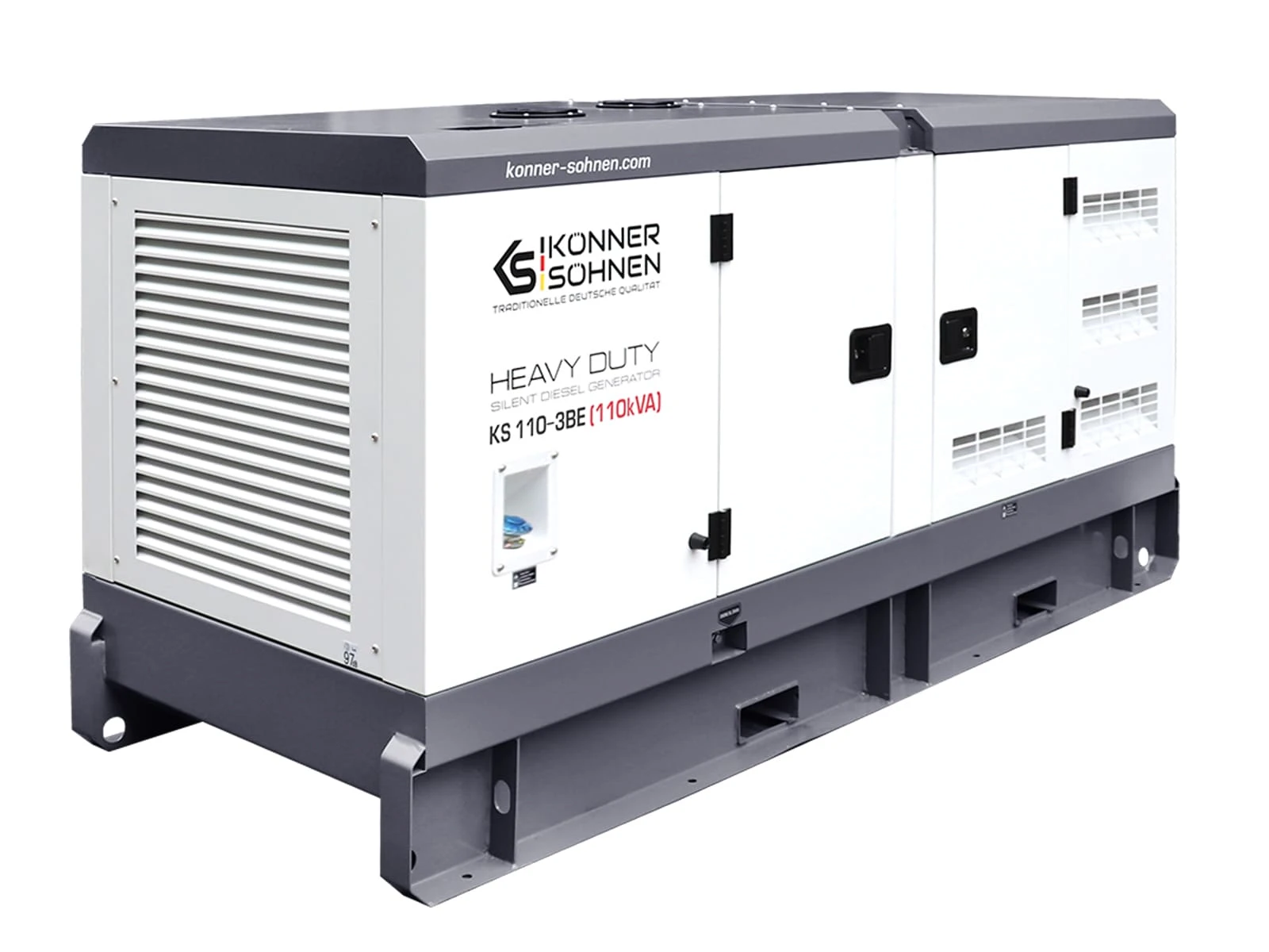 Дизельний генератор Könner & Söhnen KS 110-3BE належить до серії HEAVY DUTY та призначений для трифазного електропостачання 230/400 В. Силова установка побудована на низькообертовому двигуні Baudouin з рідинним охолодженням. Передстартовий підігрів і електростартер забезпечують стабільний запуск за різних температурних умов. Шумозахисний всепогодний кожух дозволяє експлуатацію на промислових та інфраструктурних об’єктах.