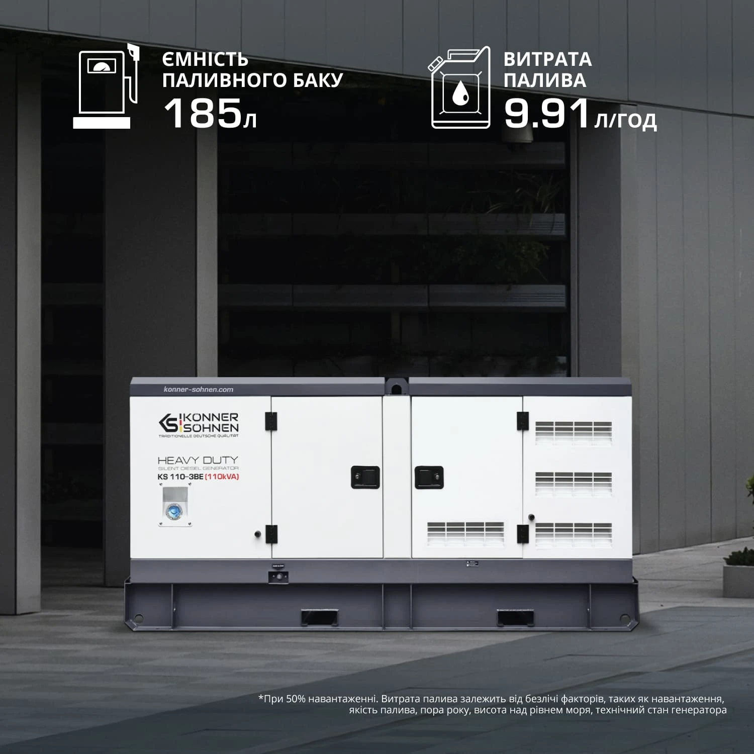 Генератор дизельний Konner&Sohnen KS 110-3BE, 230/400В, 100кВА, 3 фази, електростартер, передстартов